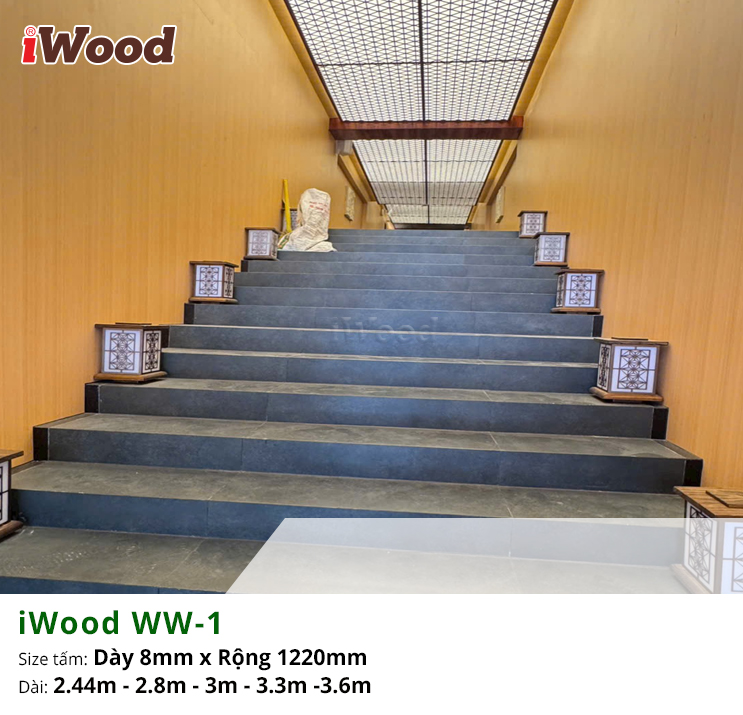 Ốp vách tường cầu thang bằng tấm ốp than tre hèm khóa iWood mang đến giải pháp hoàn hảo cho không gian nội thất hiện đại. Với bề mặt vân sắc nét và màu sắc tự nhiên, tấm ốp giúp khu vực cầu thang trở nên sang trọng, tinh tế và đồng bộ với tổng thể ngôi nhà. Cấu tạo hèm khóa thông minh giúp việc thi công nhanh chóng, mối nối khít chặt, tạo nên bề mặt liền mạch và thẩm mỹ cao. Bên cạnh đó, vật liệu than tre thân thiện với môi trường, có khả năng chống ẩm, chống trầy xước, chống mối mọt và dễ vệ sinh, đảm bảo độ bền đẹp lâu dài. Nhờ những ưu điểm nổi bật này, tấm ốp than tre hèm khóa iWood là lựa chọn lý tưởng để trang trí và bảo vệ vách tường cầu thang trong các công trình nhà ở, biệt thự hay không gian thương mại.