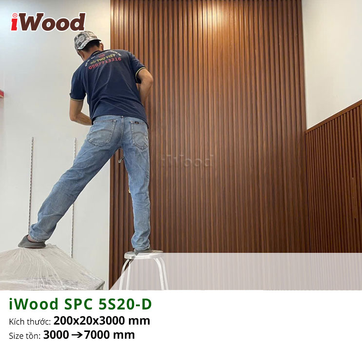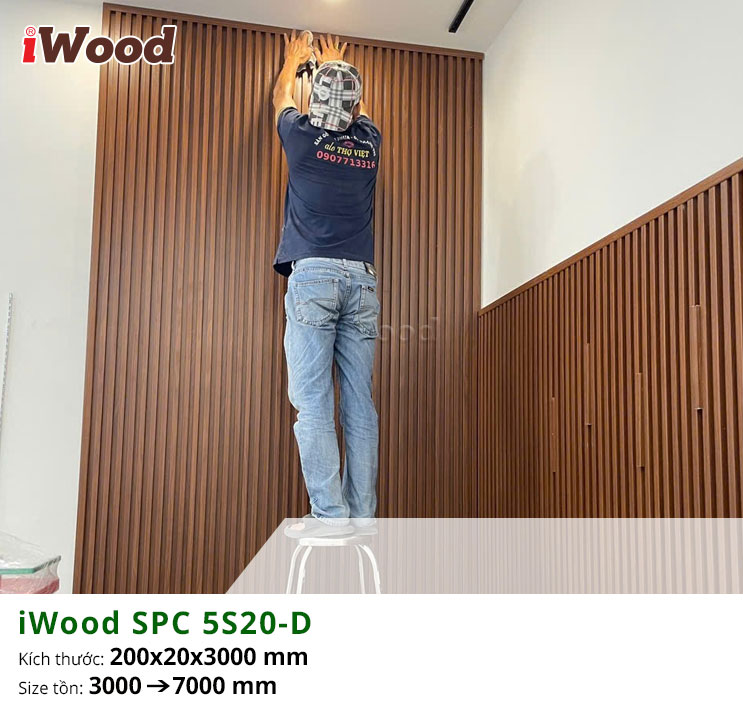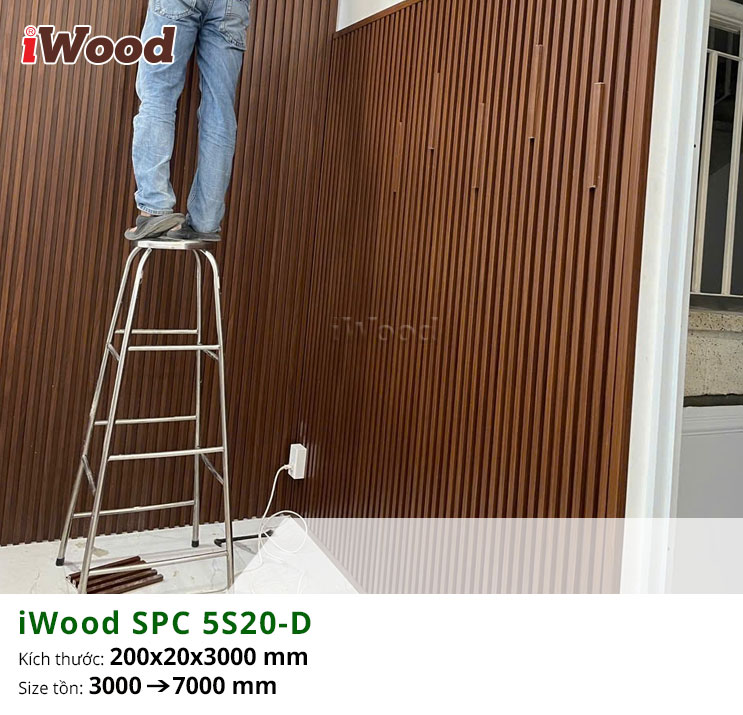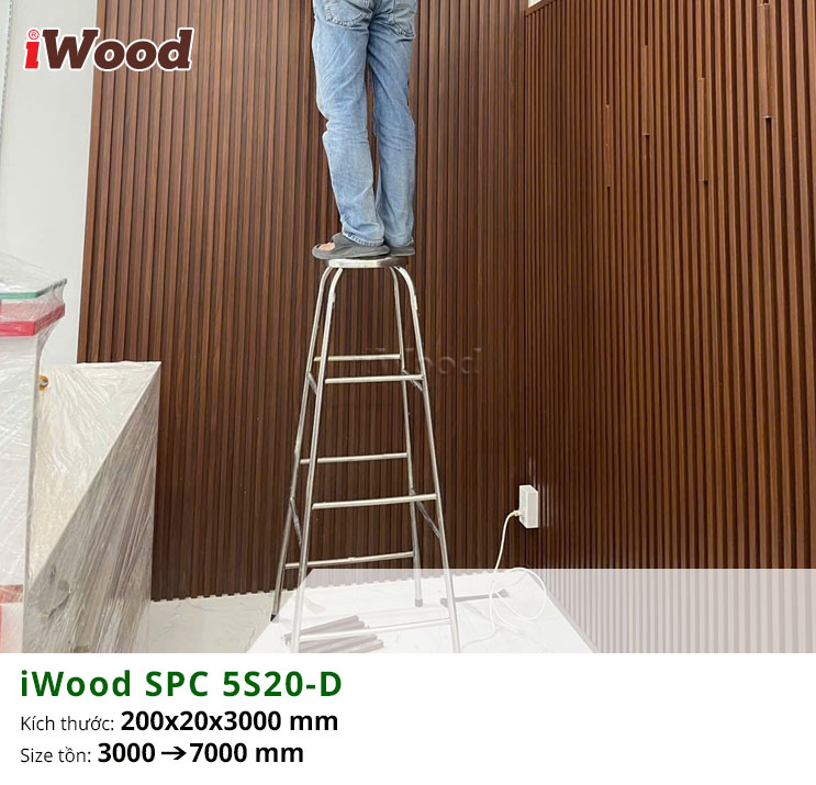 Tấm ốp lam sóng iWood SPC 5S20-D là vật liệu trang trí hiện đại mang vẻ đẹp sang trọng và tinh tế cho không gian nội thất. Với thiết kế 5 sóng đều nhau, bề mặt vân gỗ chân thực cùng gam màu nâu ấm, tấm ốp giúp tạo chiều sâu và điểm nhấn nổi bật cho các mảng tường. Chất liệu SPC cao cấp kết hợp giữa nhựa nguyên sinh và bột đá giúp sản phẩm có độ cứng chắc, chống ẩm, không cong vênh, mối mọt và dễ vệ sinh. Khi ứng dụng ốp trang trí tường phòng khách, phòng ngủ hay vách tivi, iWood SPC 5S20-D mang lại cảm giác ấm cúng, hiện đại và chuyên nghiệp, phù hợp với nhiều phong cách thiết kế từ tối giản đến sang trọng.