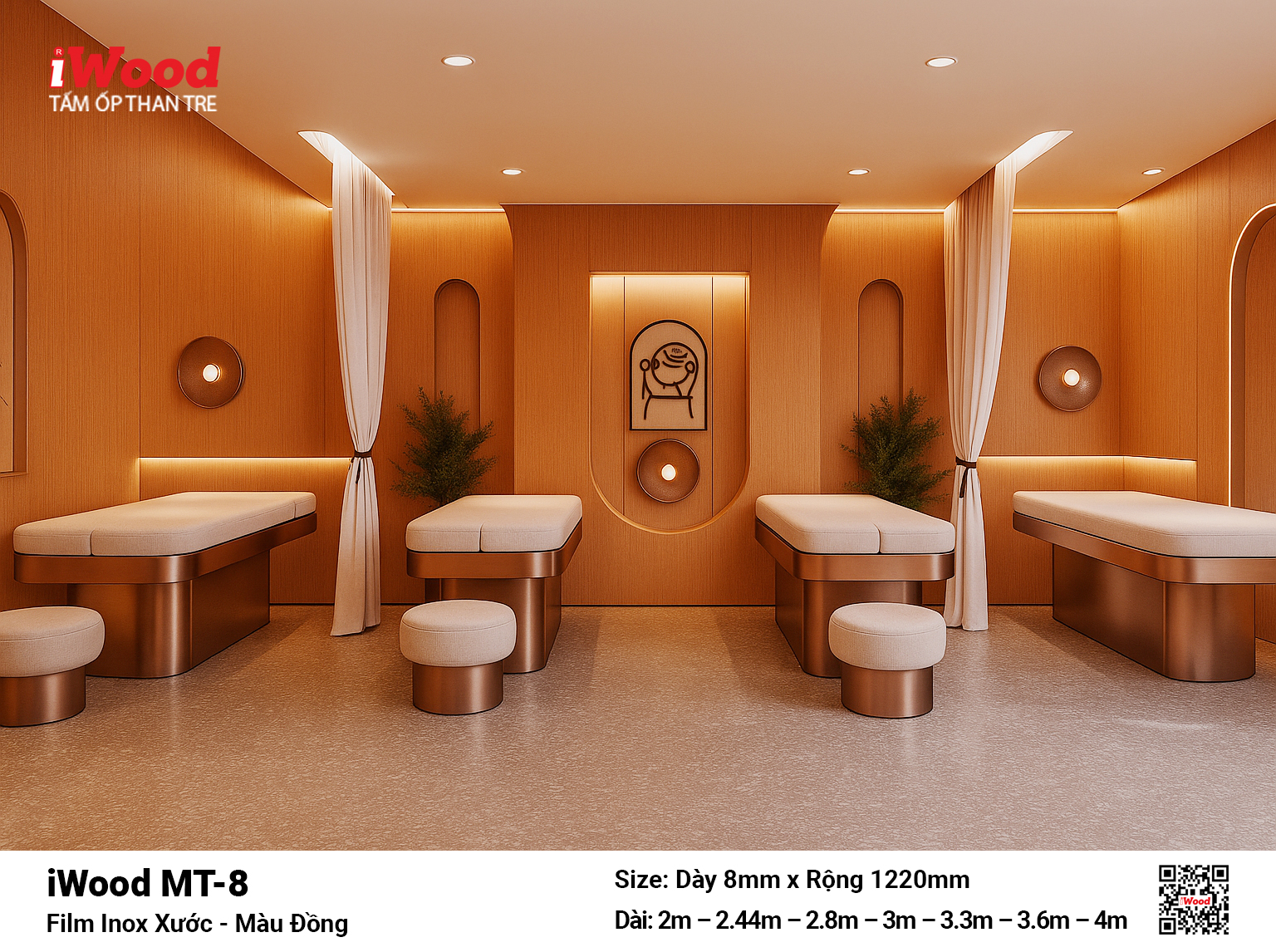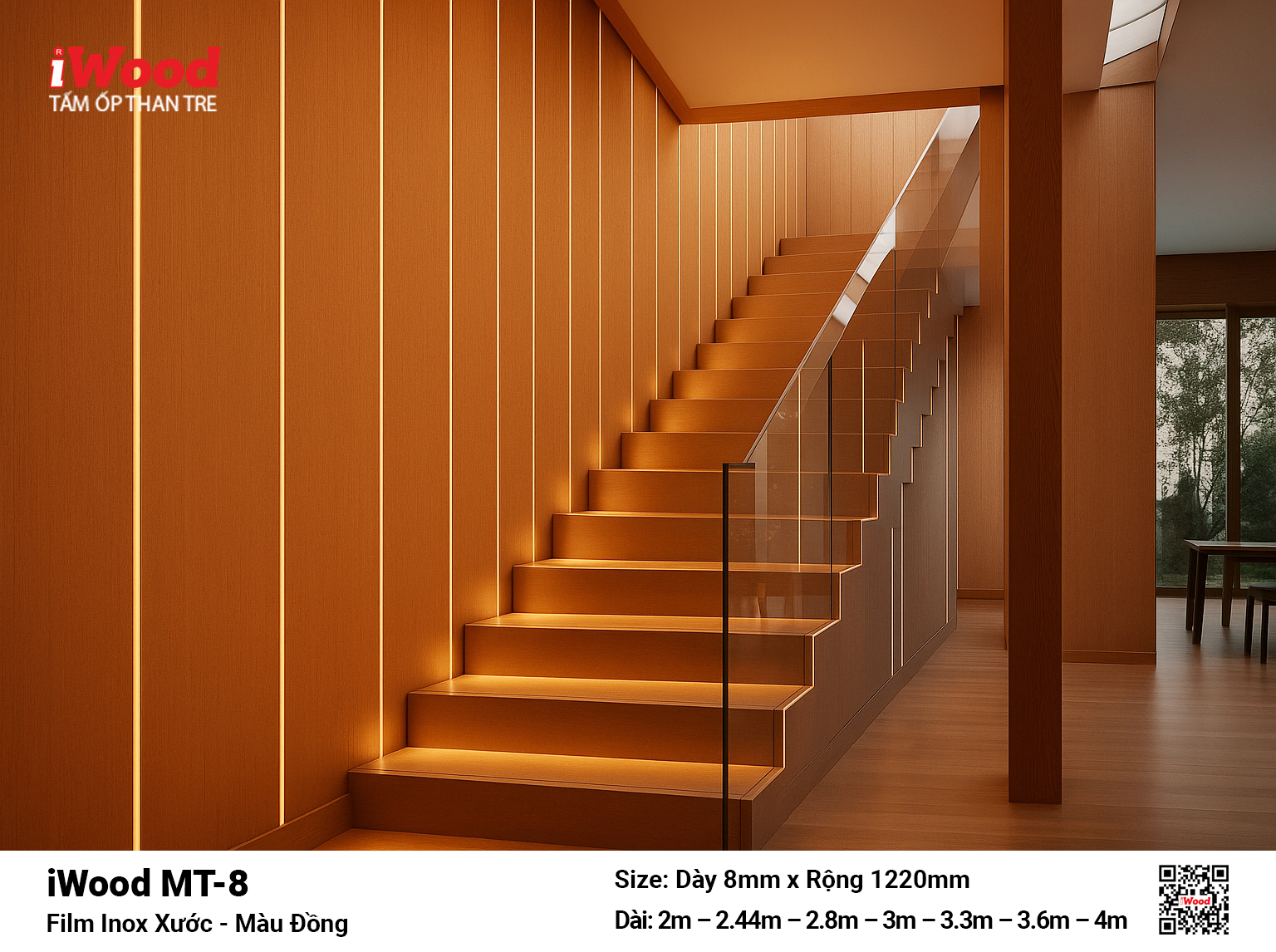 Tấm Than Tre Inox Xước Phối Cảnh 3DTấm Ốp Than Tre Film Inox Xước MT-8 Tấm Ốp Than Tre Film Inox Xước MT-8 mang vẻ đẹp inox xước hiện đại với tone màu sang trọng, bề mặt sắc nét và bền màu. Chất liệu than tre chắc chắn, chống ẩm tốt, phù hợp ốp tường – trang trí các không gian cần sự tinh tế và cao cấp.