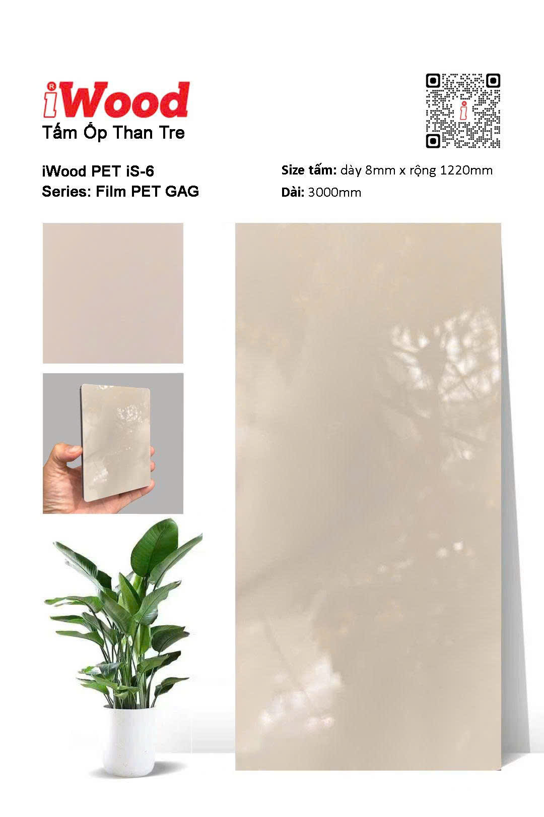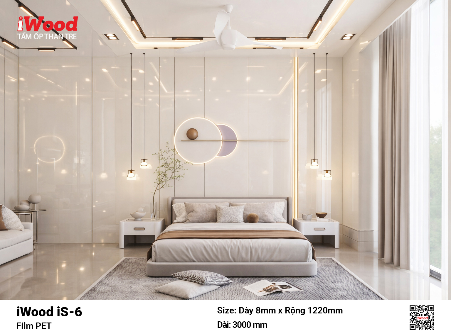 Tấm Ốp Than Tre iWood Film PET iS-6 mang phong cách hiện đại với bề mặt Film PET cao cấp, màu sắc sang trọng, dễ phối nội thất. Sản phẩm chống ẩm, hạn chế trầy xước, dễ vệ sinh, phù hợp ốp tường phòng khách, phòng ngủ, showroom và không gian thương mại.