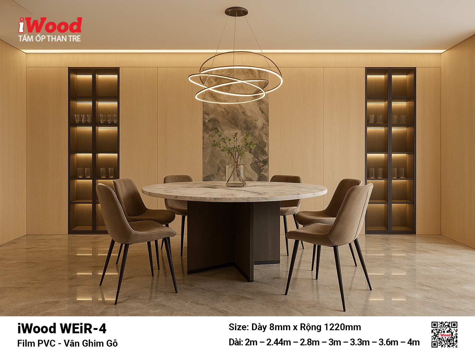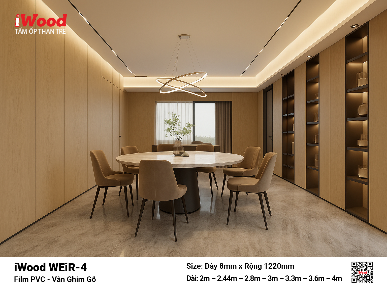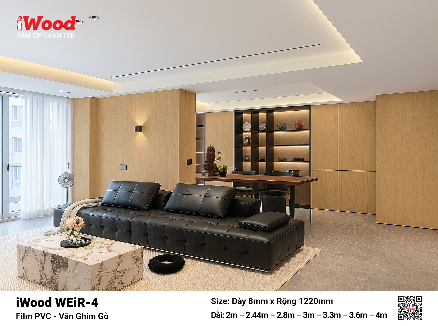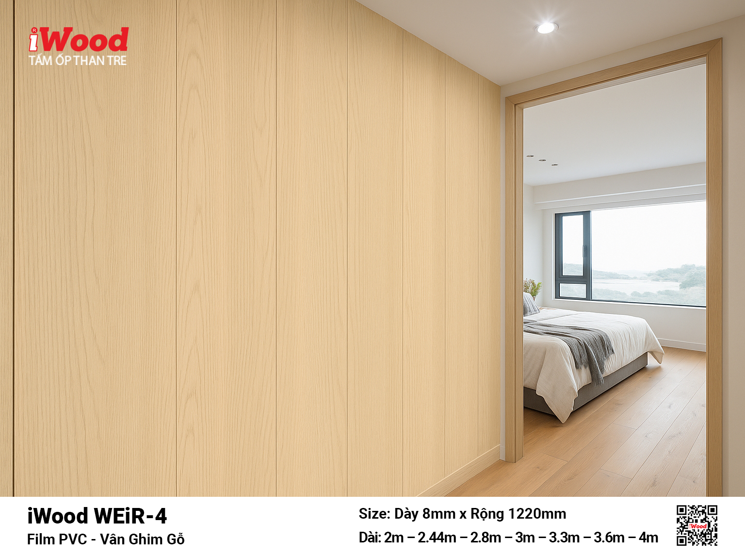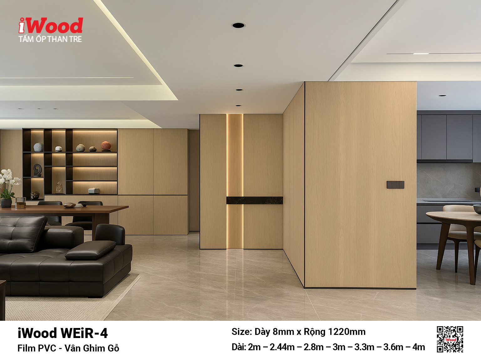 Tấm ốp than tre film vân ghim gỗ WEiR-4 mang sắc gỗ tự nhiên hiện đại, họa tiết ghim gỗ tinh tế, tạo điểm nhấn sang trọng cho mọi không gian nội thất. Chống ẩm tốt – thi công nhanh – bền màu theo thời gian.