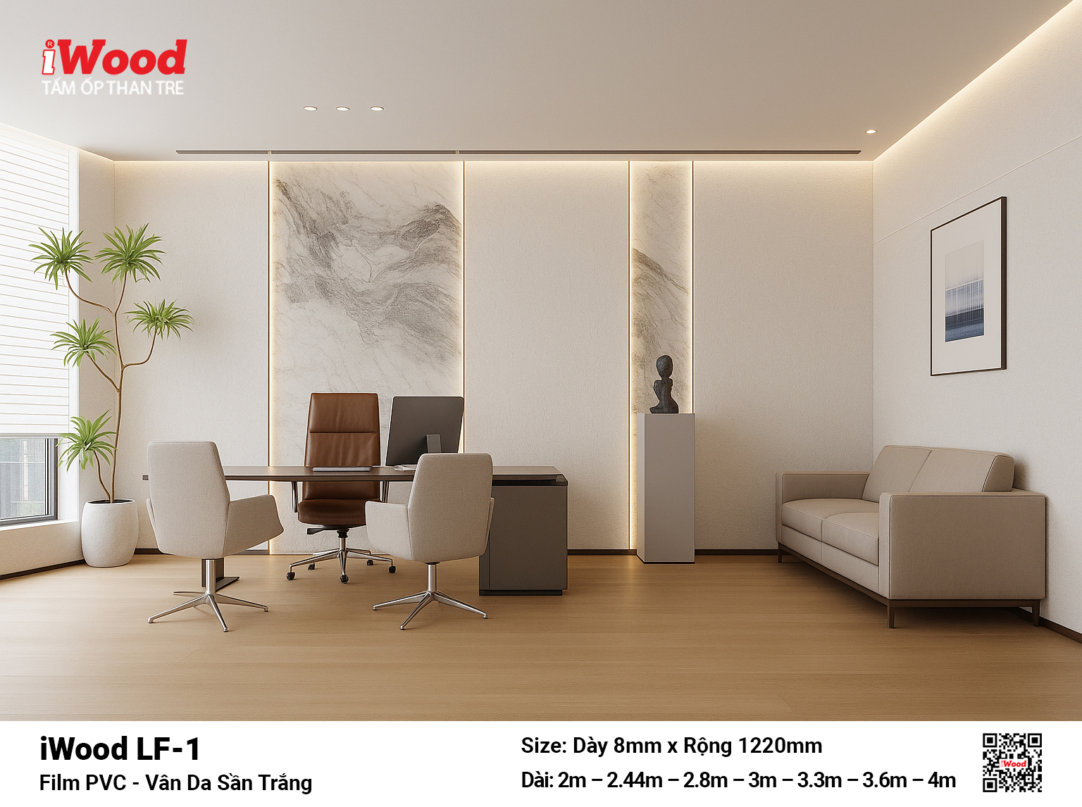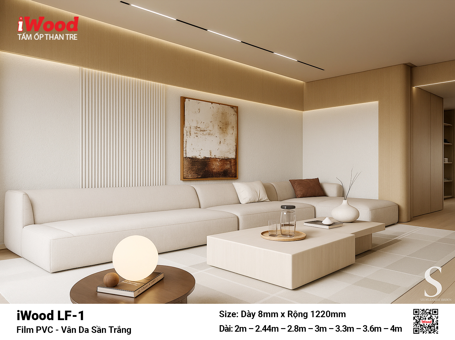 Phối Cảnh 3DTấm ốp Than Tre Flim Giả Da LF-1 Tạo điểm nhấn sang trọng với bề mặt film giả da tinh tế, mềm mại và hiện đại. Tấm ốp than tre LF-1 không chỉ đẹp mắt mà còn bền màu, dễ vệ sinh, phù hợp ốp tường – trần cho phòng khách, phòng ngủ, showroom hay không gian cao cấp.