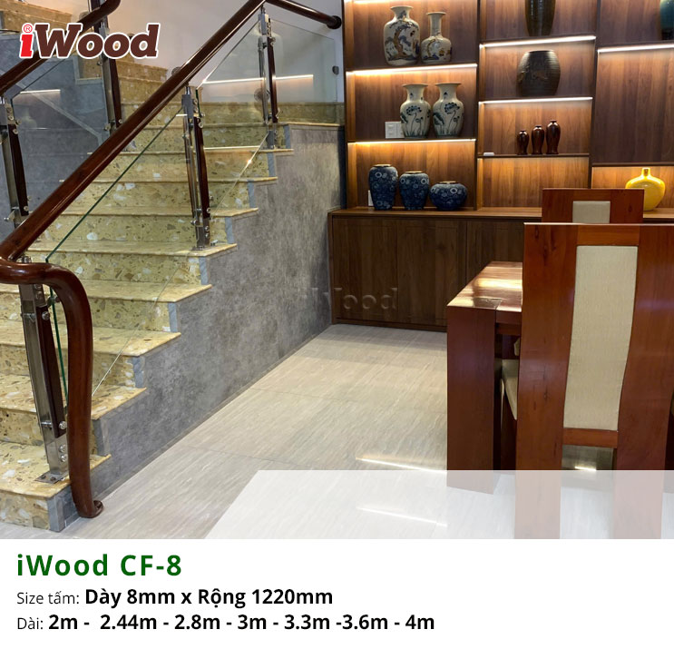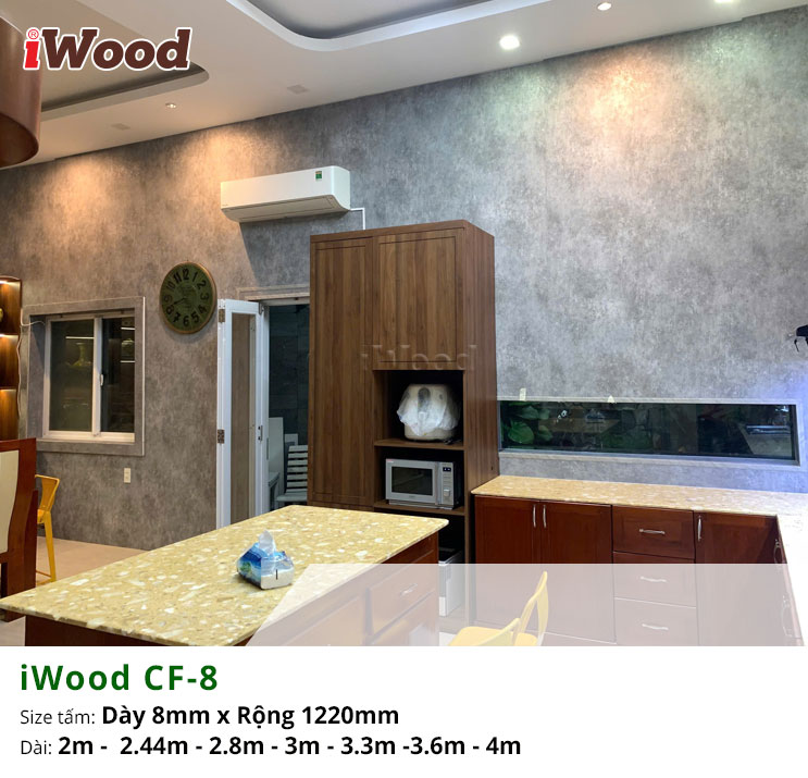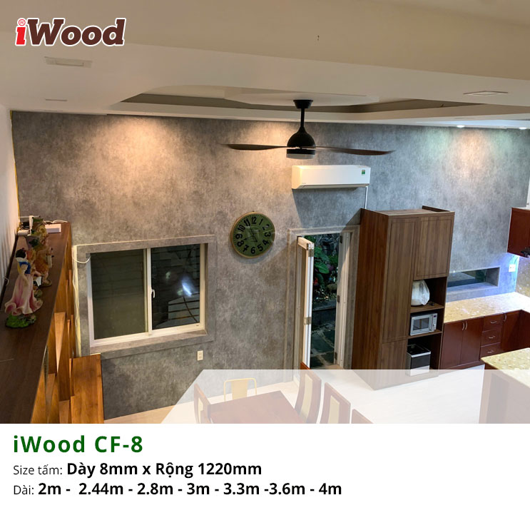 Tấm ốp than tre hèm khoá vân xám xi măng iWood CF-8 là lựa chọn lý tưởng cho các công trình cần vẻ đẹp hiện đại và tối giản. Với tông màu xám trung tính, bề mặt mô phỏng xi măng chân thực cùng cấu trúc hèm khoá chắc chắn, sản phẩm mang đến khả năng thi công nhanh, khít nối đẹp và độ bền cao. Khi ứng dụng ốp trang trí tường, iWood CF-8 giúp không gian trở nên sang trọng, sạch sẽ và đồng bộ hơn, phù hợp cho phòng khách, phòng ngủ, quán café, văn phòng hay các khu vực cần phong cách công nghiệp tinh gọn nhưng vẫn ấm áp và thẩm mỹ.