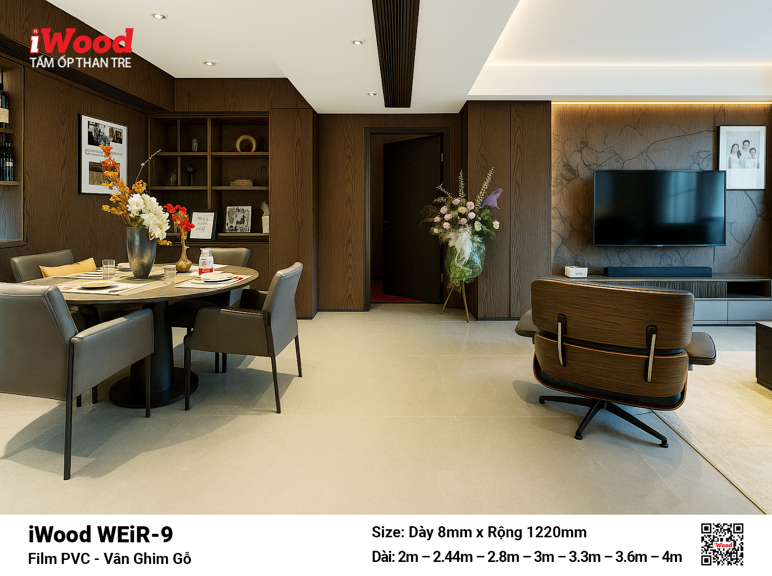 Tấm Than Tre Vân Ghim Gỗ Phối Cảnh 3DTấm ốp than tre vân ghim gỗ WEiR-9 Tấm Ốp Than Tre Film Vân Ghim Gỗ iWood WEiR-9 – Sự Mộc Mạc Tinh Tế Trong Không Gian Hiện Đại