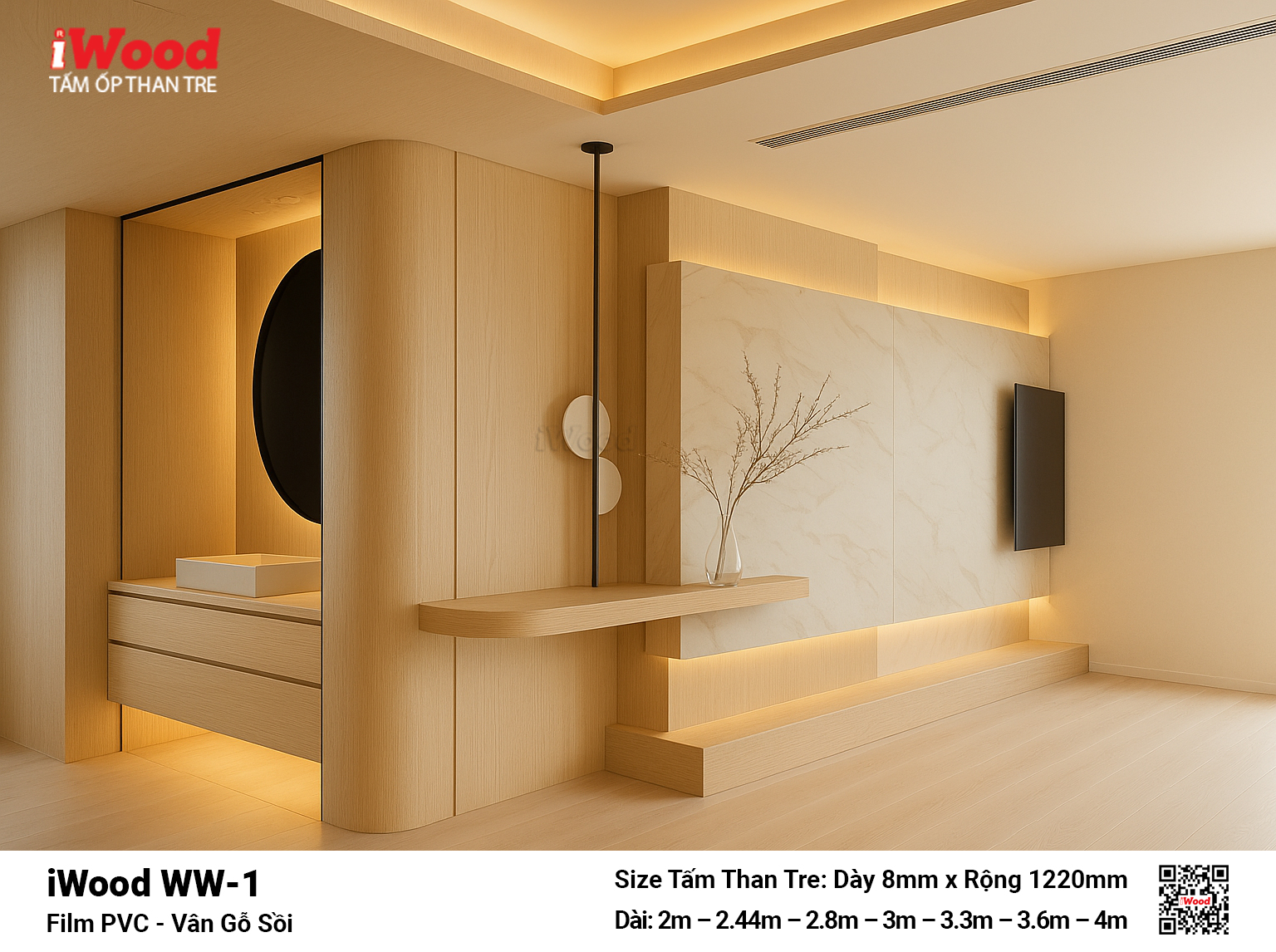 - Ứng dụng: Ốp tường, trần trang trí không gian nhà ở, trường học, trung tâm thương mại, khu nghỉ dưỡng,…