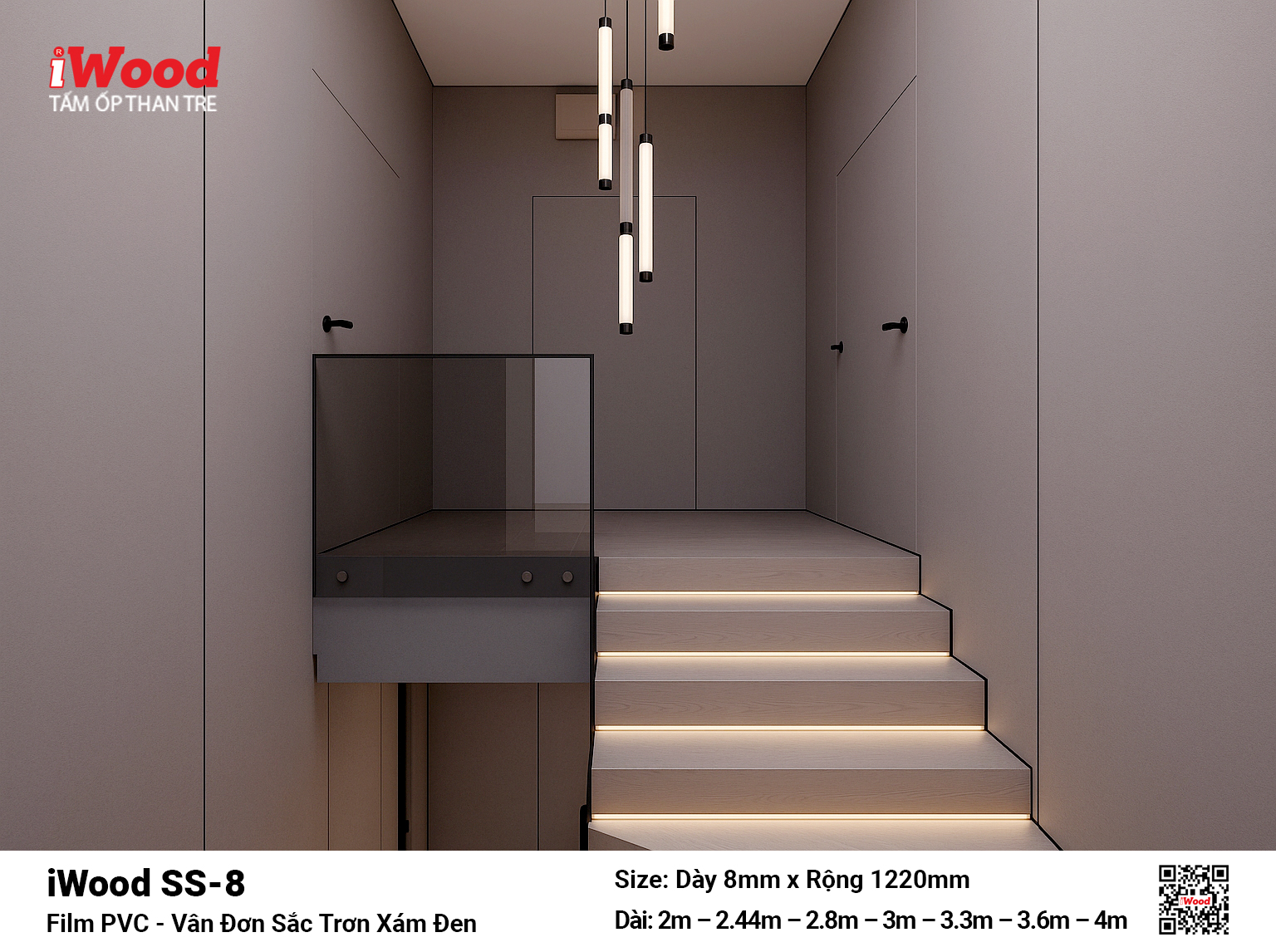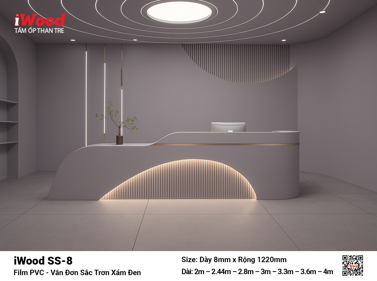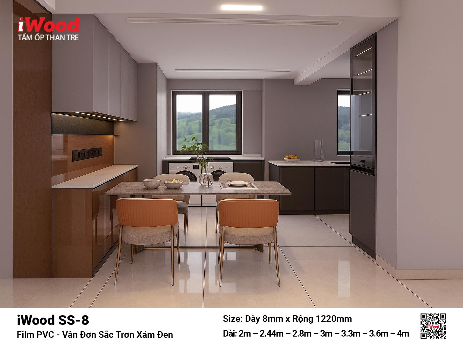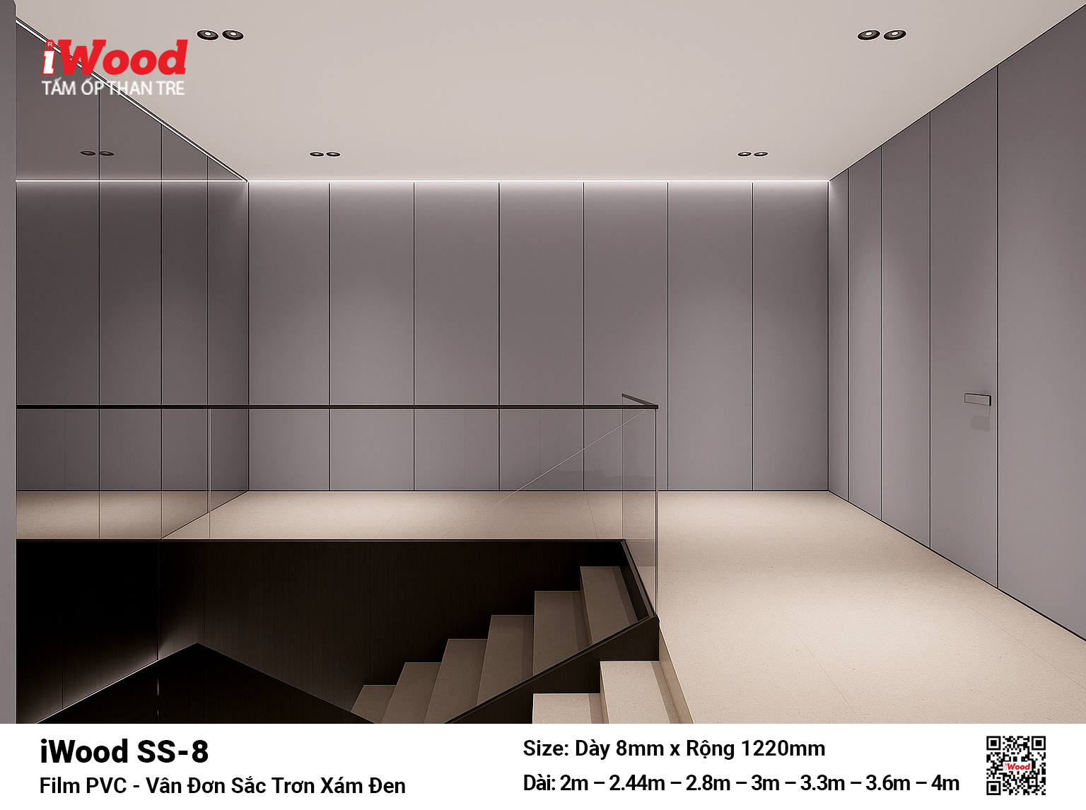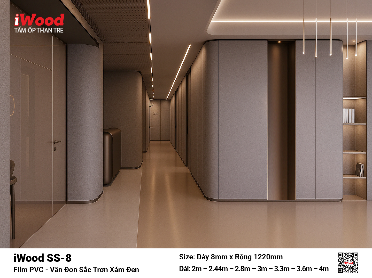 Tấm Than Tre Đơn Sắc Phối Cảnh 3DTấm Than Tre Film Đơn Sắc SS-8 Tấm Than Tre Film Đơn Sắc SS-8 – Màu xám tinh tế, sang trọng, hoàn hảo cho vách tường nội thất hiện đại. Chống trầy, dễ vệ sinh, mang đến không gian ấm cúng và thanh lịch.