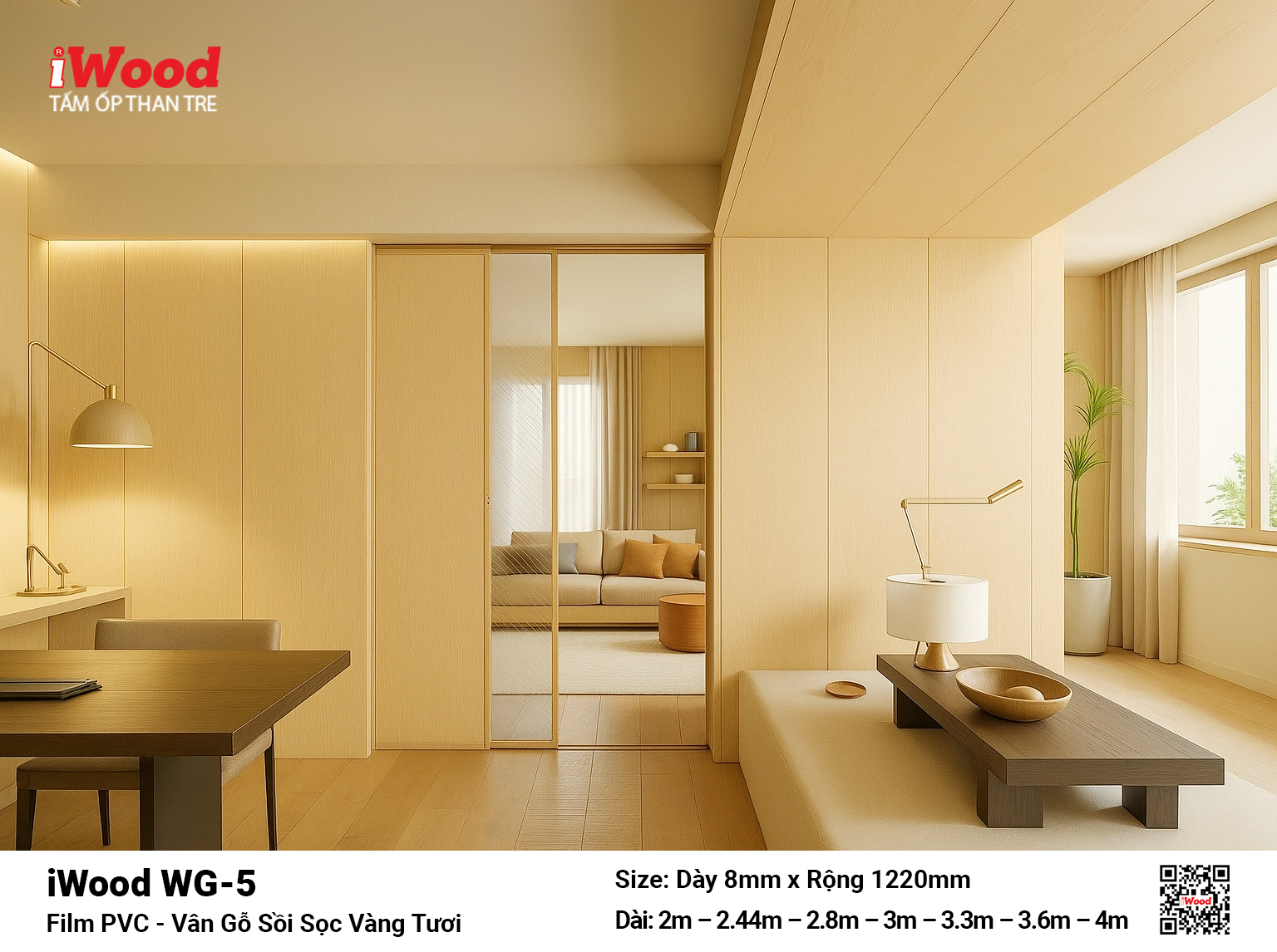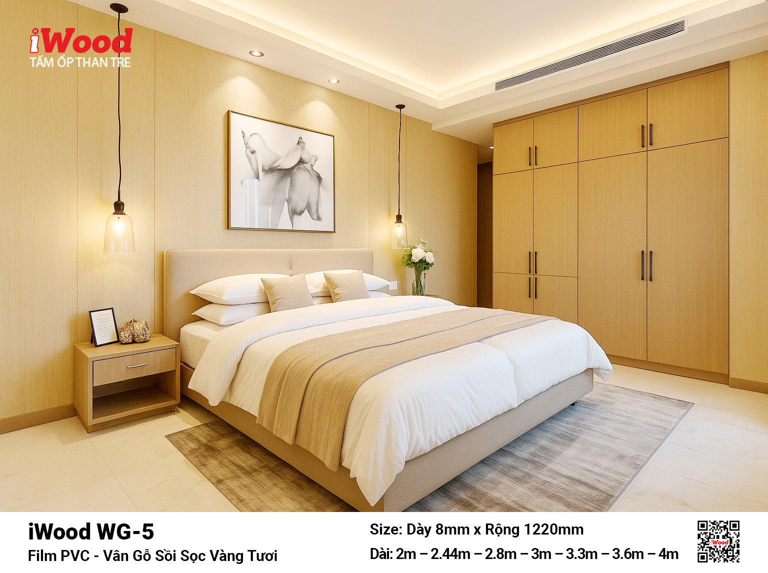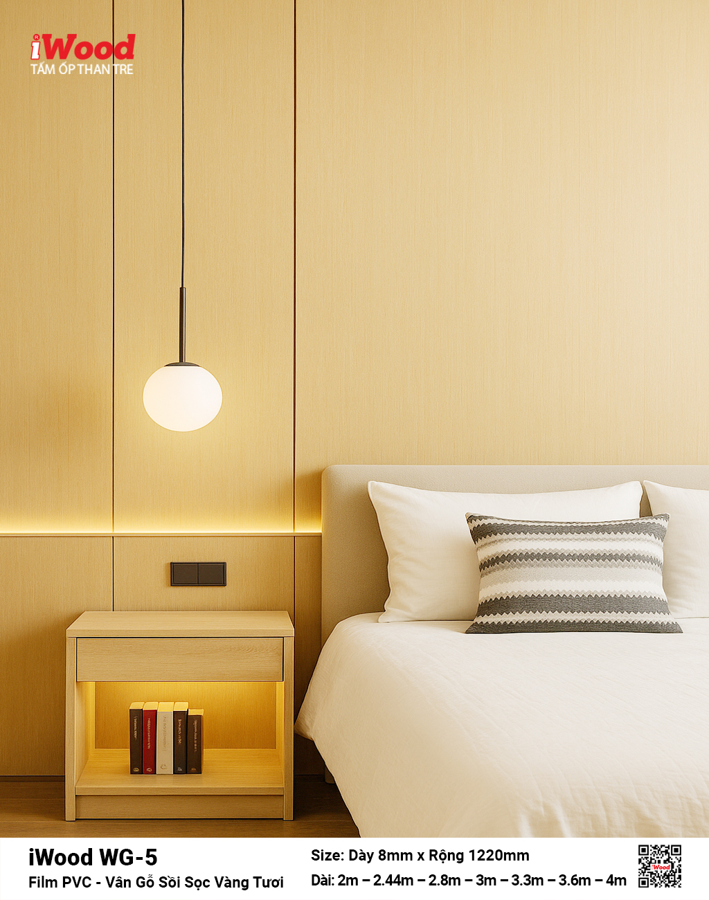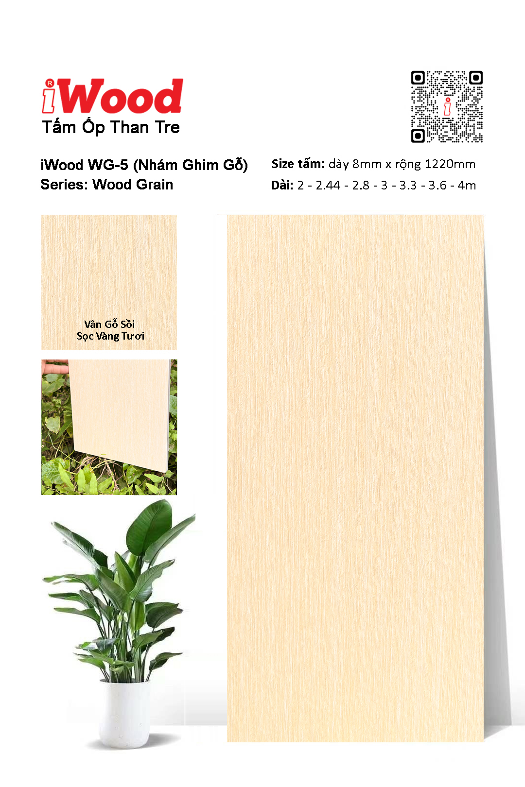 Tấm ốp than tre WG-5 vân gỗ vàng mang đến vẻ đẹp ấm áp và gần gũi cho mọi không gian nội thất. Với vân gỗ tinh tế, sắc vàng tươi sáng, sản phẩm tạo điểm nhấn sang trọng nhưng vẫn giữ được cảm giác mộc mạc, tự nhiên.