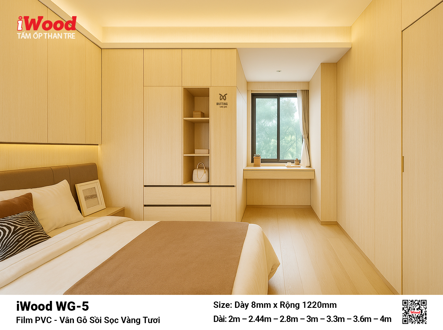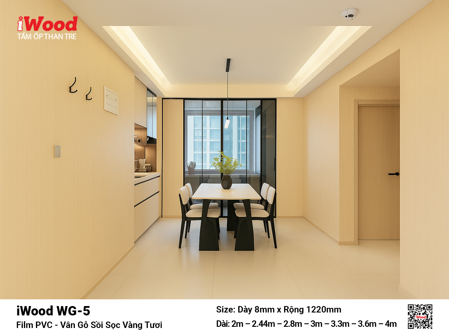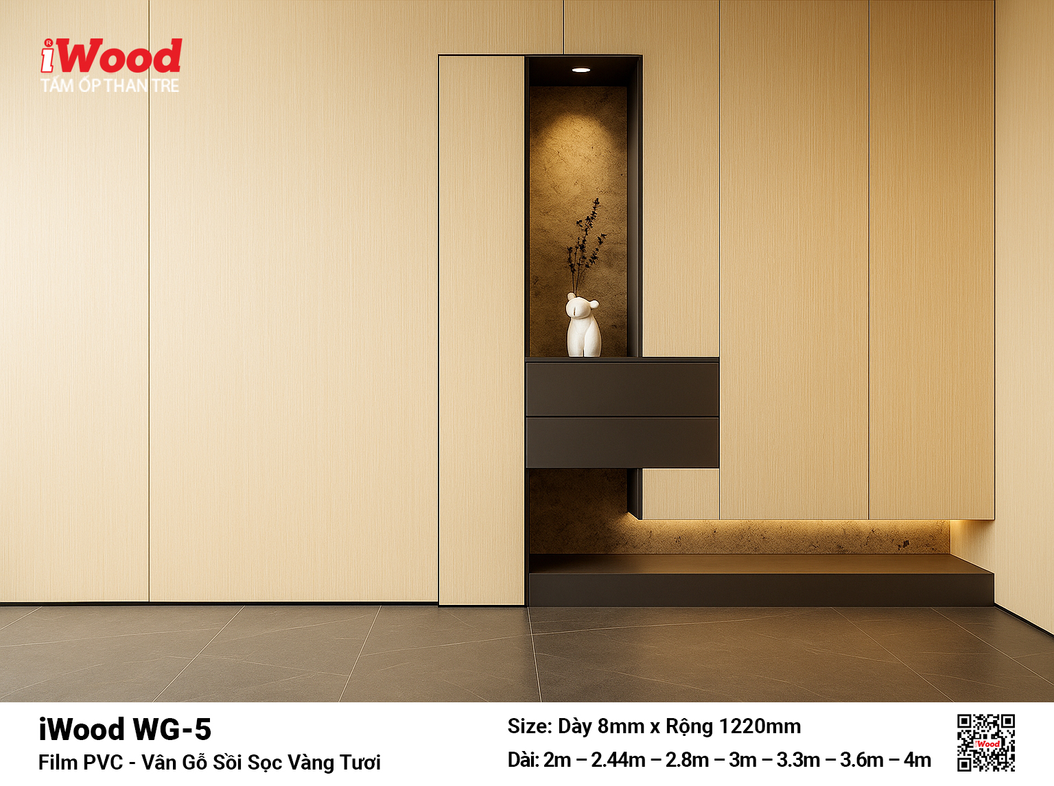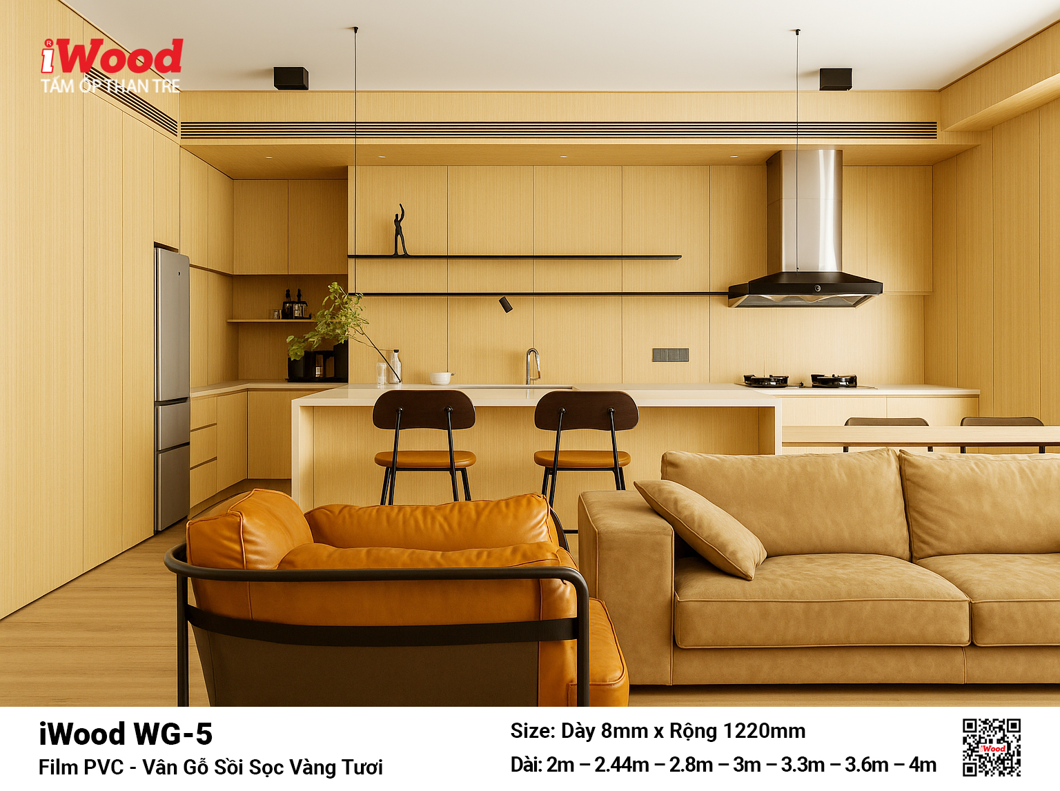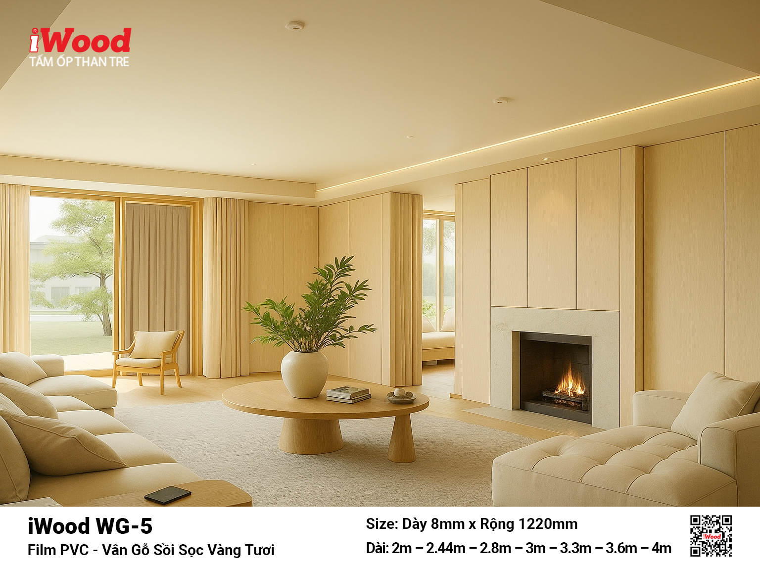 Tấm ốp than tre WG-5 vân gỗ vàng mang đến vẻ đẹp ấm áp và gần gũi cho mọi không gian nội thất. Với vân gỗ tinh tế, sắc vàng tươi sáng, sản phẩm tạo điểm nhấn sang trọng nhưng vẫn giữ được cảm giác mộc mạc, tự nhiên.