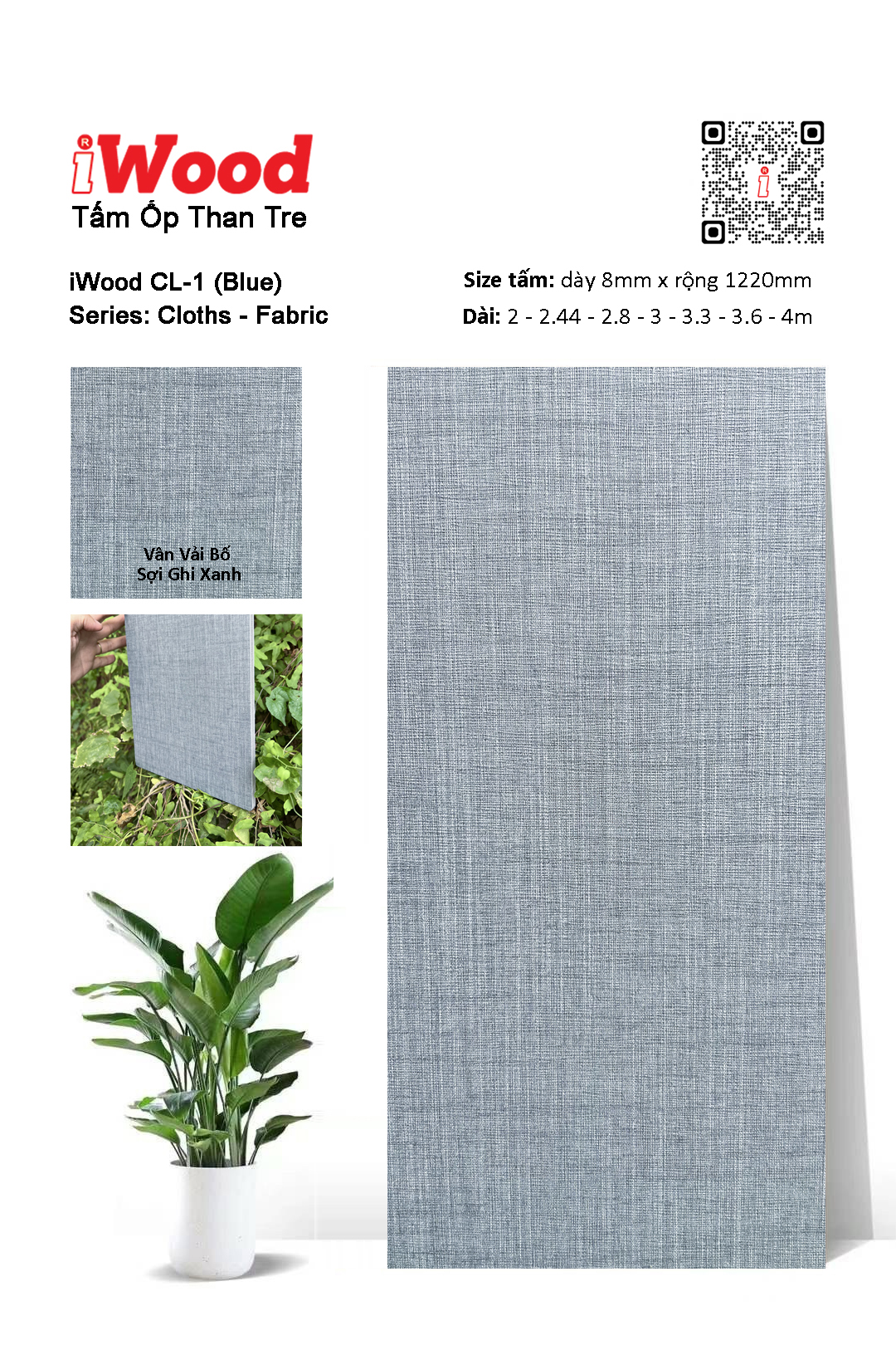 Tấm Than Tre Film Vân Vải Phối Cảnh 3DTấm Than Tre Film Vân Vải CL-1 Tấm ốp than tre CL-1 vân vải sợi ghi xanh mang đến không gian tinh tế, hiện đại với bề mặt vân vải độc đáo, tạo cảm giác mềm mại và sang trọng. Tông màu ghi xanh nhẹ nhàng kết hợp với kết cấu sợi vải giúp không gian trở nên thanh lịch và dễ chịu.