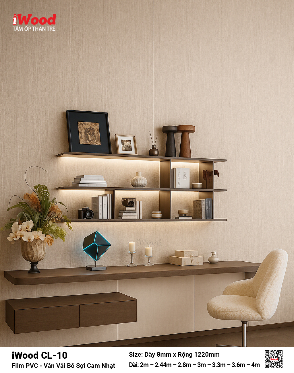 Sự kết hợp hài hòa giữa sắc cam nhạt ấm áp và họa tiết vải bố tự nhiên mang đến cảm giác gần gũi, nổi bật nhưng vẫn tinh tế. CL-10 là lựa chọn lý tưởng để tạo điểm nhấn mềm mại, sáng không gian và nâng tầm thẩm mỹ cho mọi phong cách nội thất.